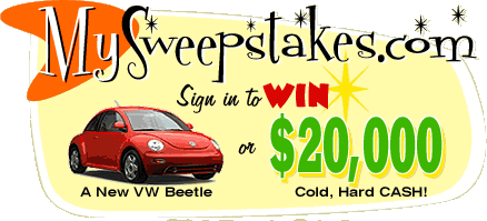 CLICK HERE & ENTER TO WIN A NEW BUG OR $20,000 CASH... PLUS OTHER MONTHLY PRIZES!